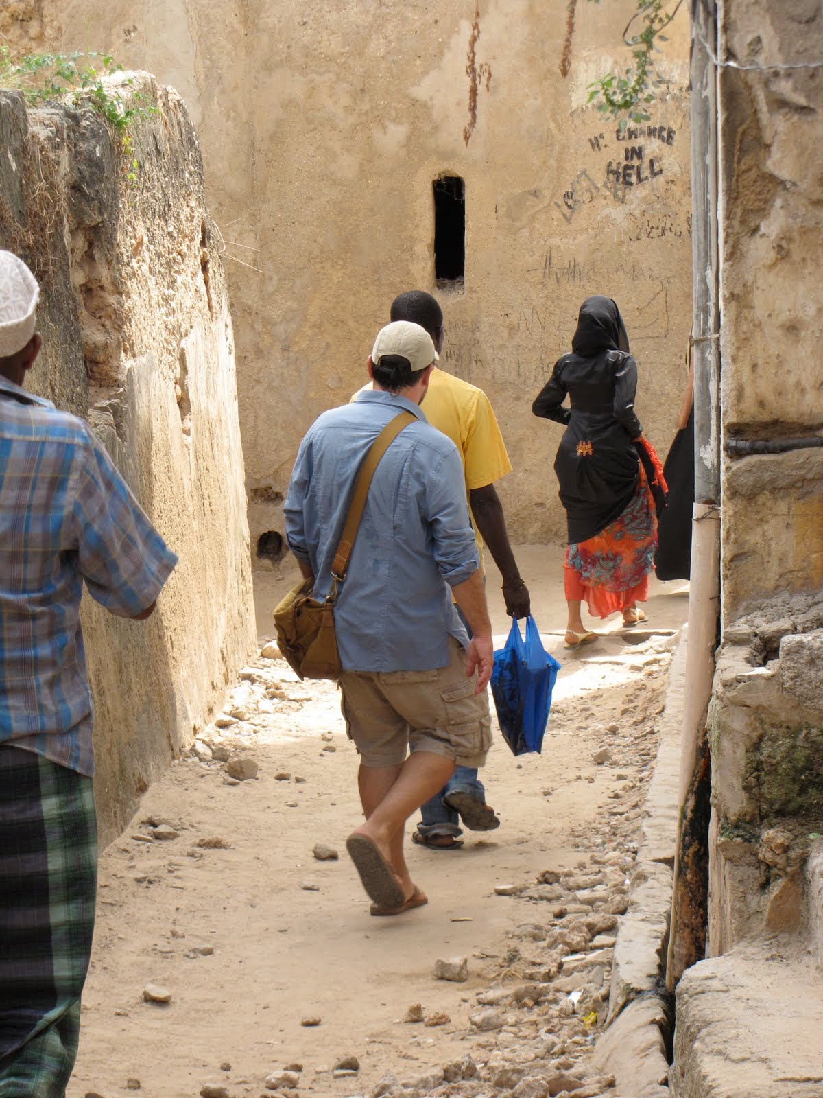 Our hostess at the Peponi hotel had warned us that Lamu town is a "rabbit warren" of narrow alleys that branch off in every direction. Although she provided us with a hand drawn map of the main sites, she did not venture to try and capture the complexity of this old stone town. We met a friendly young Swahili man named Charles, who agreed to be our guide for the morning as we explored the town.