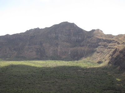 Over the March break, we are planning on a four day camping trip to climb Mount Kenya with a group of friends. To help prepare ourselves, we've been making 5km hikes every second, or third, day over the past few weeks (after school or early morning on the local nature trails mostly). But on Monday we took "dry land training" seriously, as we finished up work with the Guardians of Hope in Mai Mahiu just past noon and headed up the 1000 m climb on Mt. Longonot, a dormant volcano that rises from the dusty floor of the Great Rift Valley.